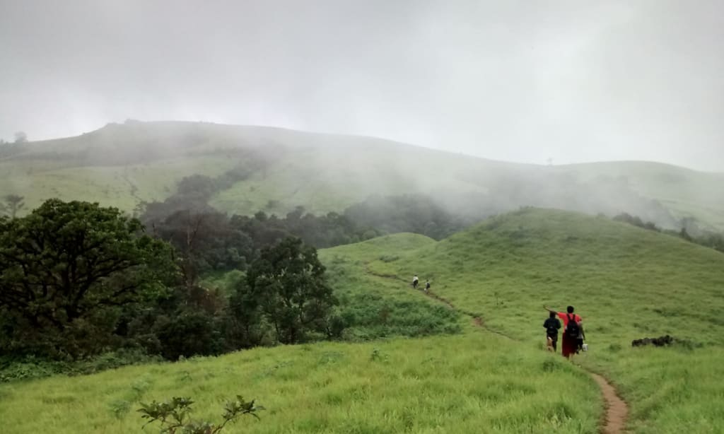 Midway through, the forest opens into wide meadows, where clouds drift lazily, and the wind carries a cool freshness. The final ascent is steeper, but as you climb higher, you’re rewarded with stunning views of the rolling Western Ghats and, on clear days, even a glimpse of the Arabian Sea in the distance.