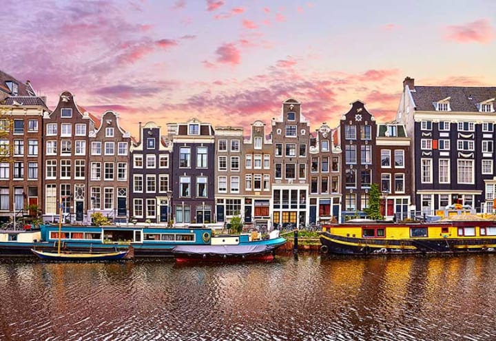 The capital of the Netherlands, Amsterdam is known for its artistic heritage, elaborate canal system, and narrow house with golden facades which are the legacies of the city from the Golden Aga in the 17th century. Cycling is very popular in the city and there are many bike paths.