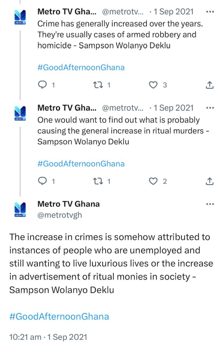 The report also found that the Ashanti Region topped the chart for the region with the most number of crime incidents for the year under review.