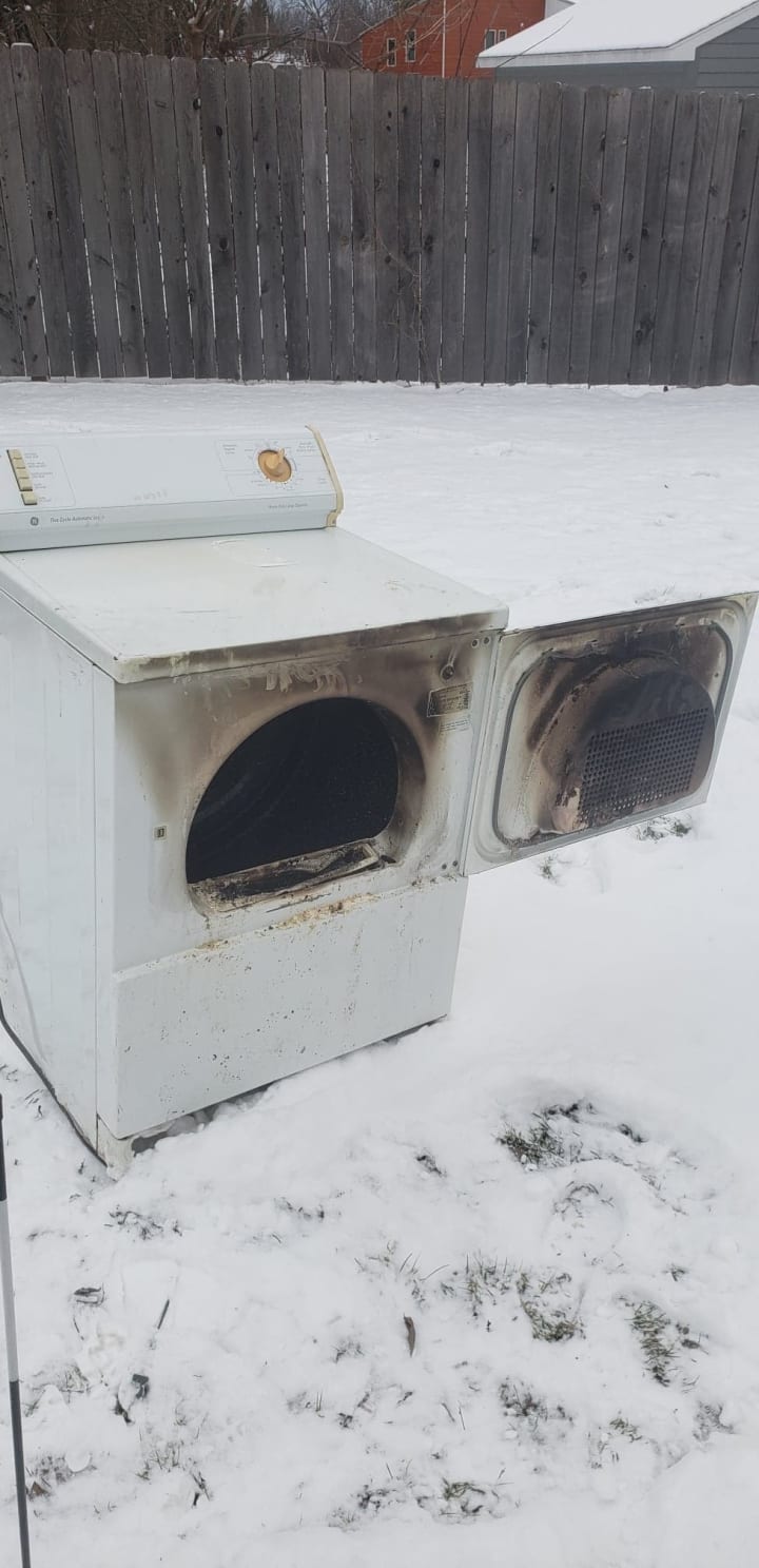 About 10 firefighters arrived shortly thereafter, they have me go through her upstairs and open all the windows to help let out the smoke while they dragged the sad carcass of her dryer out into the snow and cover her still smoldering clothes in it.