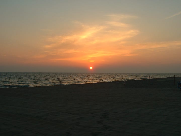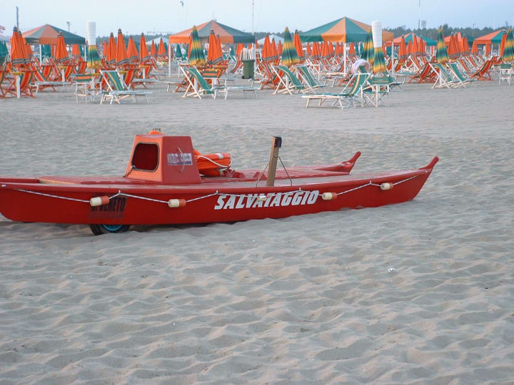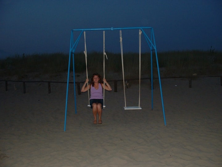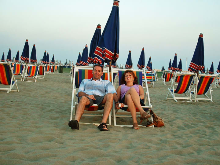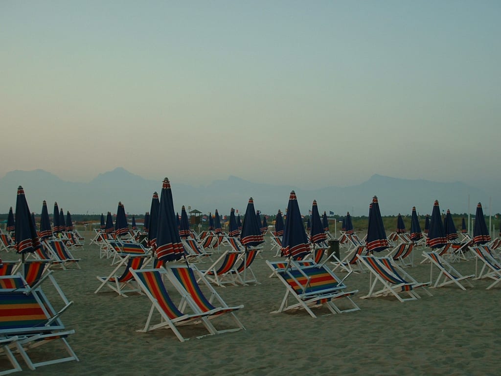 But in little more than thirty minutes we stood on an inviting stretch of sand and surf leading to the Viareggio lighthouse. The fresh sea air immediately relieved me of my fatigue and irritability. We held hands as we walked, not immediately realizing how strange it was that no one else was around. Later we found out that we were on a private beach owned by one of the many resorts. We delighted in the perfectly arranged rows of beach loungers and umbrellas lined up as far as you could see. Not one was a centimeter out of pattern. It seemed surreal that they were empty, like we were the last couple on earth. We relaxed in the loungers, rejoicing as the bright colors of the sun bled into the horizon forming splashes of pinks and purples. We submerged ourselves up to our shorts in the refreshing salt water. We even swung in the little playground area savoring the extra breeze.
