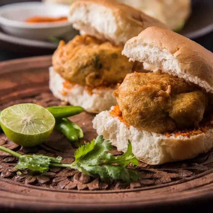 Vada Pav - Often referred to as the "poor man's burger," Vada Pav is a popular street food that consists of a deep-fried potato fritter (vada) sandwiched between two slices of bread (pav). It is usually served with spicy chutneys and fried green chilies.