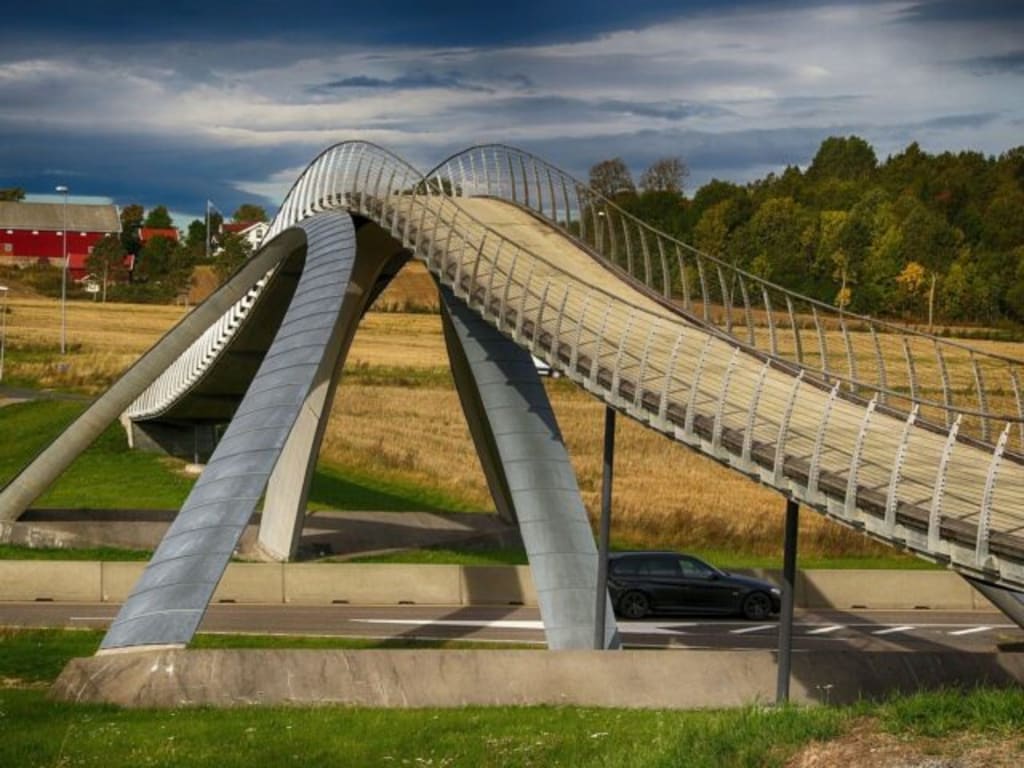 The Da Vinci Bridge is located in Nygard, Norway. (pictured above) This was the thought of Italian artist Leonardo da Vinci to have a bridge cross the Golden Horn in Istanbul in 1502. This never happened, but artist Vebjorn Sand transformed da Vinci’s vision into a walking bridge over the highway in Nygard. Its sleek parabolic design and wood-steel frame evoke the elegance of the original design.