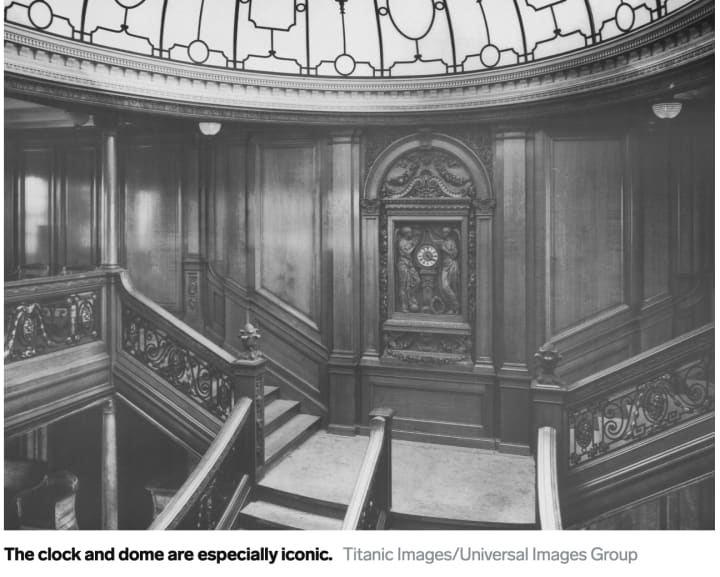 No replica would be complete without the staircase. Fun fact, the artistic clock piece in the wall is the wood ‘raft’ that Rose and Jack had their memorable last scenes together on in the movie Titanic. It was not a door. It was entirely fitting for how the movie ended.