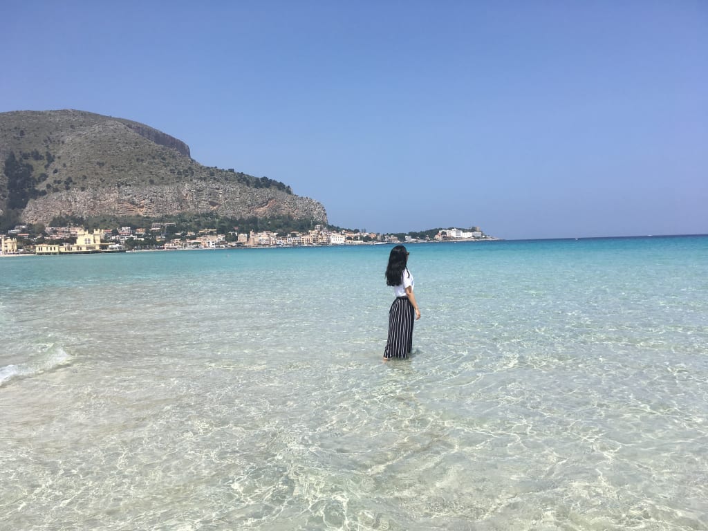 Mondello Beach! (She's smiling because that coke is full of rum.)