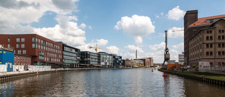 The Munster municipal port has become a Creative Quay with many office buildings, art, culture, restaurants, and trendy clubs. There is a particular charm here with a blend of reconstructed warehouses and modern architecture.