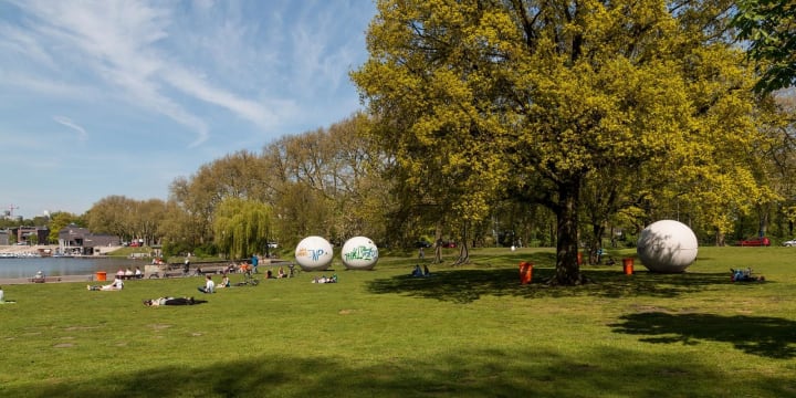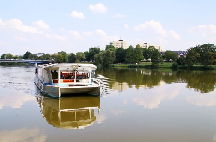 At this spot, you’ll find the jetty for SOLAARIS, a solar-powered boat that ferries people from the city center to the Allwetterzoo on the west shore.