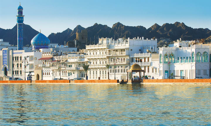 Oman is a nation located on the Arabian Peninsula. It has a terrain encompassing desert, riverbed oasis, and long coastlines on the Persian Gulf, Arabian Sea, and Gulf of Oman. Wahiba Sands is known as a region of dunes inhabited by Bedouins. The capital Muscat is a port city that sits on the Gulf of Oman surrounded by mountains and desert. It has an amazing history and has become quite a modern city.