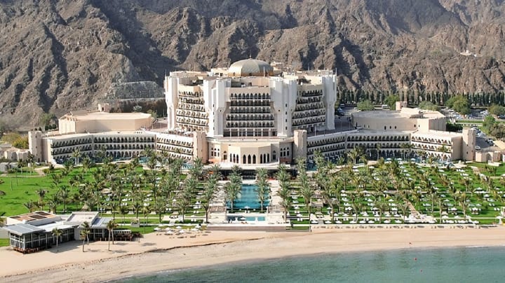Al Bustan Palace sits among lush gardens. Today it is a grand hotel with an amazing domed atrium. It is well worth to see the interior and the location.
