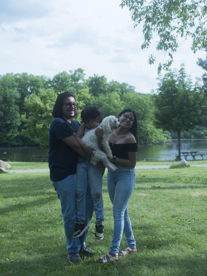 There was another picnic table where a family was celebrating a birthday. There was an old couple, a young couple, a little boy, and a puppy. There were food and balloons on the table. I can’t remember if there was a cake or not. I asked the young couple if I could take pictures of them, they didn’t mind. They participated in different poses and allowed me to direct them as well. There was a photograph I liked where they held the puppy and the boy was sitting on the ground. Later I asked them to hold the kid as well and took another picture.