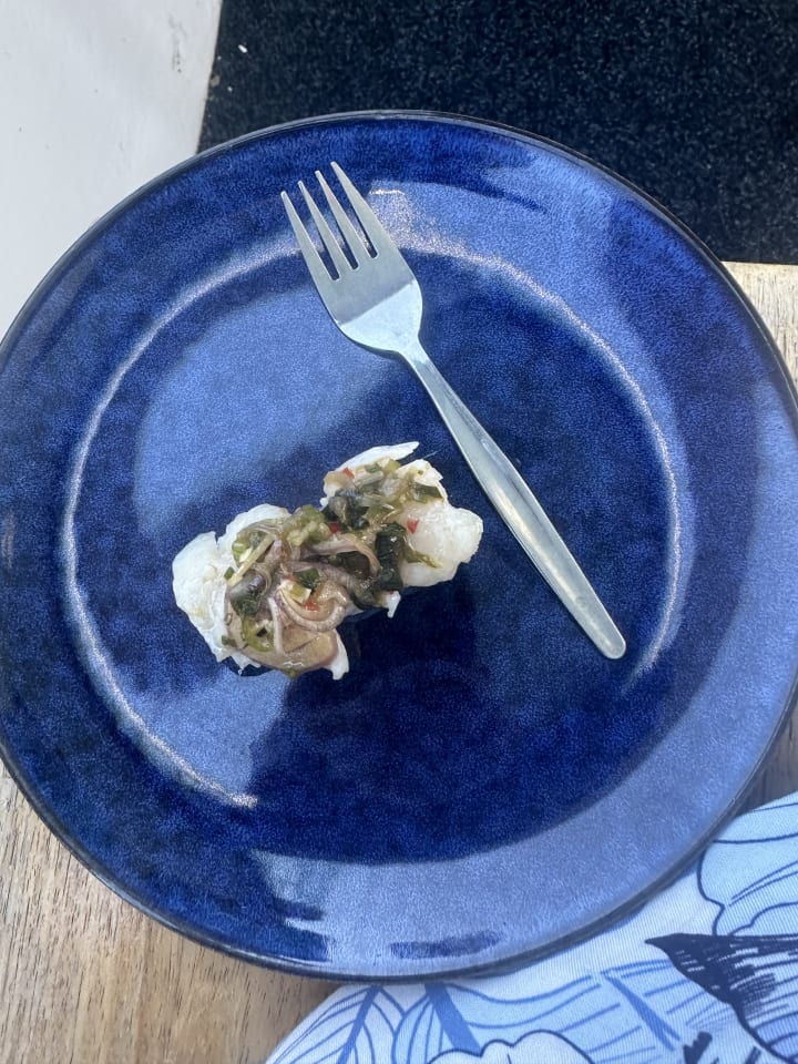 We had an extremely talented chef on board who prepared an amazing 7 course meal for us and one of those delicious courses was Sashimi Pearl Meat. Perfectly sumptuous.