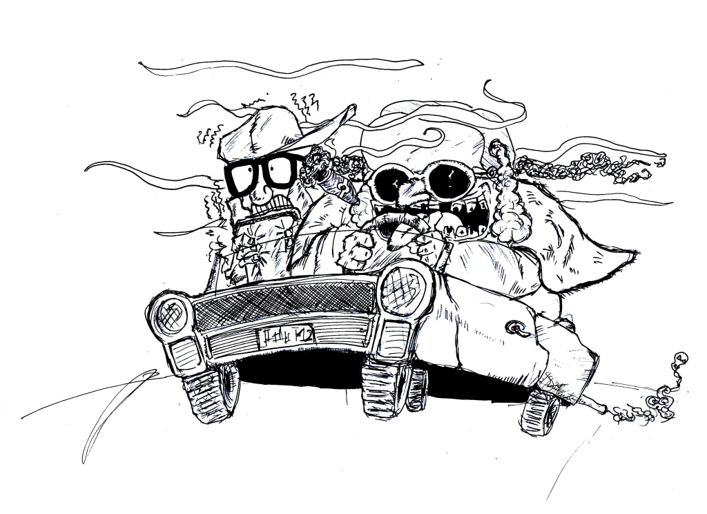 Best to just play it out. We both smile, pretending we’re two middle-aged morons tooling around on a seventy degree spring day before Gus turns to me. “I hates driving on Mondays, but before I blacked out at the bar last night, I remembered our solemn oath over cheap beers."