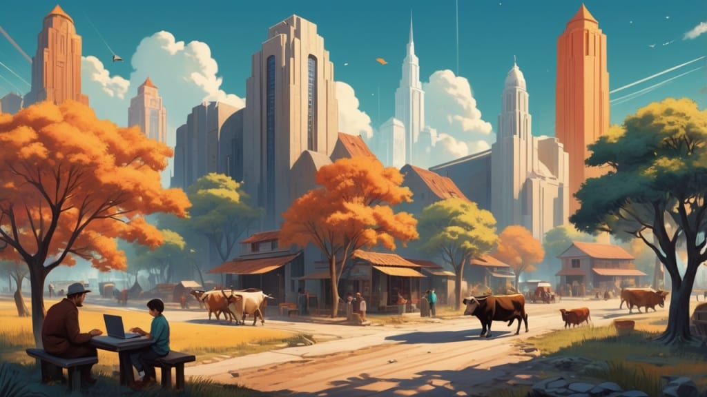 Old life was peaceful but slower. Modern life is efficient but stressful. One gives calm, the other gives speed.