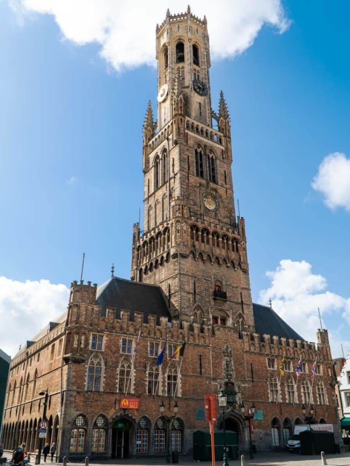 The Belfry of Bruges a medieval bell tower stands 83m over the square dating back to the 13th century. It is worth the effort to climb up the 366 steps to get awesome views from the top. The belfry has a 47-bell carillion which is still played manually.