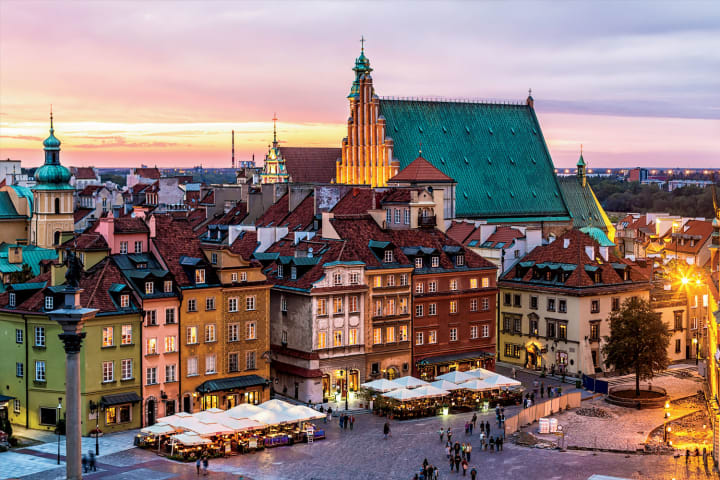 Old Town Market Square used to be the epicenter of commercial life in the city. You can see Renaissance and Baroque merchant houses in different colors. There is a mermaid figure on the fountain in the center that holds a special meaning for Warsaw and in the summer you can sit at a restaurant table and watch the city going by.