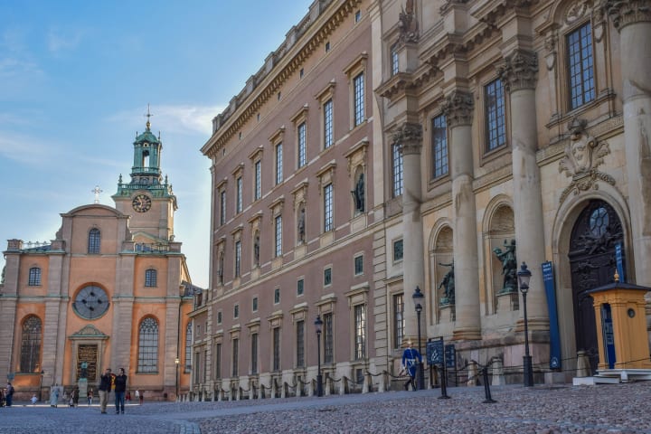 The Royal Palace or Sveriges Kungahus is located in a lovely setting by the water's edge, on the periphery of Gamila Stan. It is the official residence of the King of Sweden and is on a beautiful island and a UNESCO World Heritage Site. The palace is one of the largest in Europe with over 600 rooms and several museums. It was built in the 18th century in the Baroque style. It is exciting to see the changing of the guard.