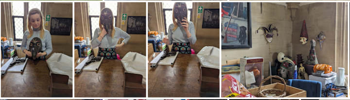 Before I left I got into a conversation with Tiffany and her mum Michelle. I noticed a plague doctor mask and Tiffany told me that she loved masks, and the collection was hers. She then put on the plague doctor mask for me, and we talked about our interests including my writing.