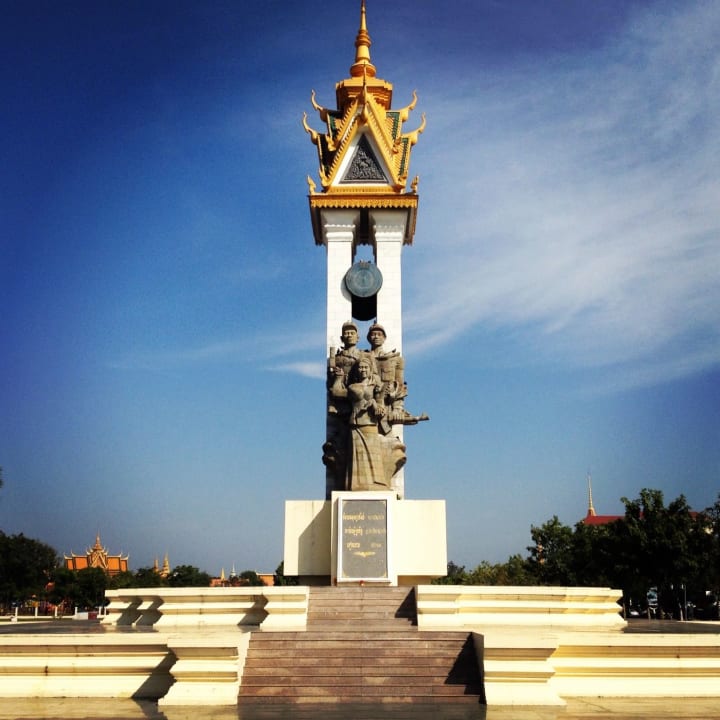 At Wat Botum Park is the Cambodian-Vietnam Friendship Monument. It was built in 1979 after Vietnamese forces defeated the Khmer Rouge.
