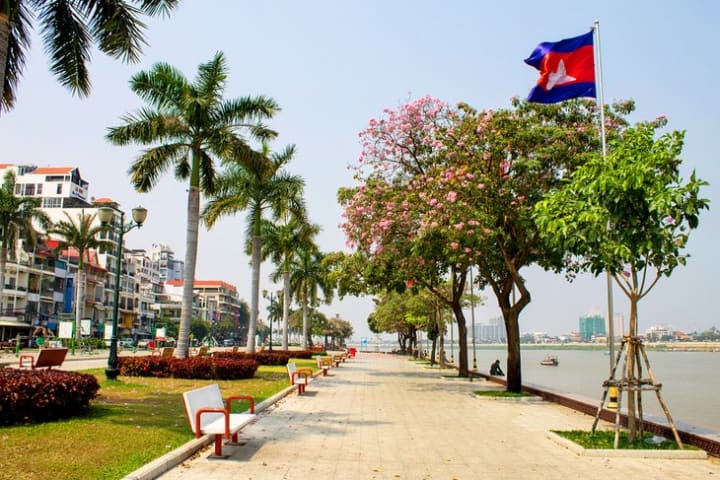 Sisowath Quay is the most popular promenading spot for both walkers and joggers. The riverside strip is lined with palm trees. There are cafes and street stalls.