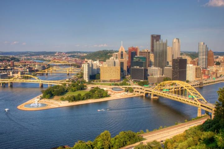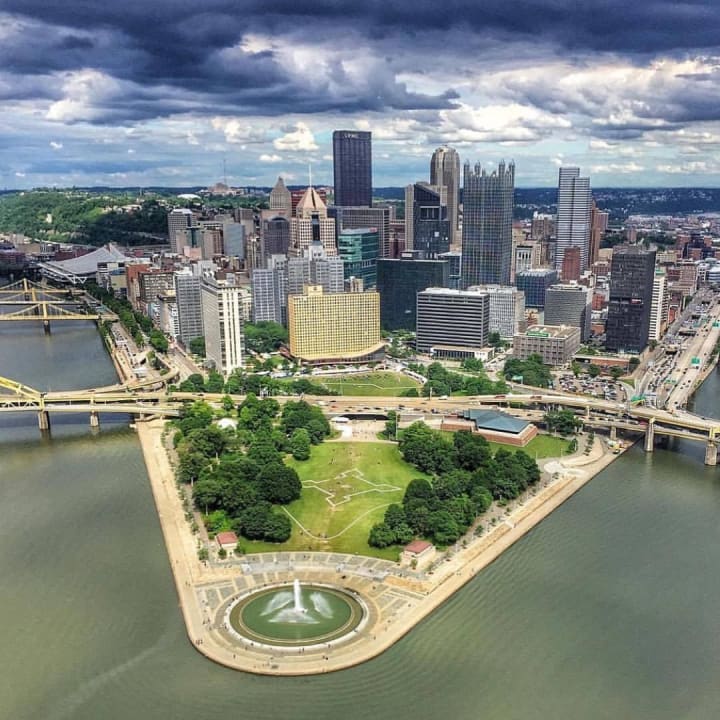 The Golden Triangle is the heart of Pittsburgh located at the junction of the Allegheny and Monongahela Rivers.
