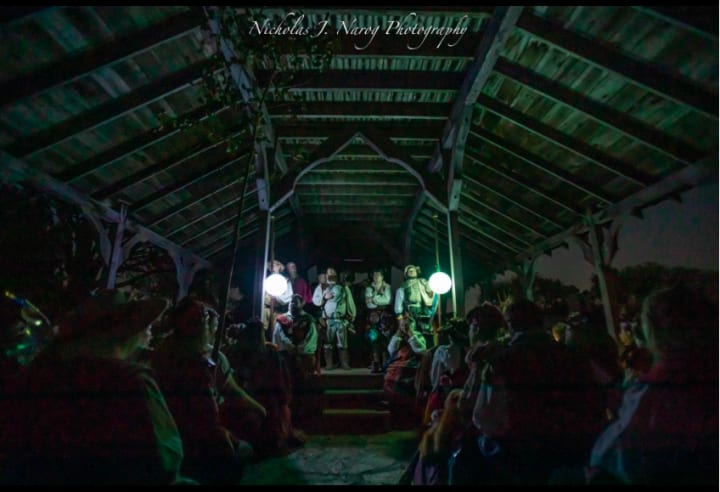 But one compliment stands out. A woman who is an occasional participant over the festival season and friend gets a chance to stop and chat with my Friday morning. I saw her for the first time all season the previous week when I was in front of the Riddle Booth performing, but I didn't get a chance to stop and say hello. I am near the front gate, and I take some pictures of patrons with her and her partner for them. I told her I was sorry I didn't get a chance to give her more than a wave last week. She tells me, "That was your audience. You had them and they ate you up. They loved you."