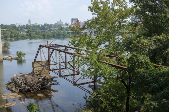 Belle Isle is part of the James River Park System. You can get access to it by crossing a scenic footbridge. This small piece of land is surrounded by smooth rocks of all shapes and sizes. Residents of Richmond come here to take in the sun on the rocks. There are also walking trails through woodlands and mountain biking is a popular activity.
