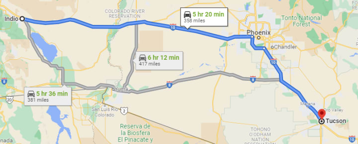 Day 2: Indio, CA to Tucson, AZ with a stop in Phoenix