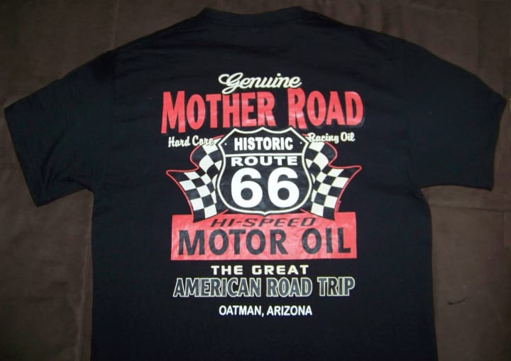 Featured in the John Steinbeck classic "The Grapes of Wrath", the Dust Bowl era was a time of major migration to the west. Steinbeck dubbed Route 66 "The Mother Road" and the nickname stuck. It is a wonderful escape that takes the traveler to many times and places. For automobile buffs and history buffs, Route 66 is a must-travel, bucket list item. I bought the shirt pictured below during one of my relaxing drives across the country. The section of Route 66 between Kingman and Oatman, Arizona, known as the Arizona Sidewinder is exhilarating. Before I get farther ahead of myself along the route here, I'll backtrack to the beginning in my home state of Illinois.