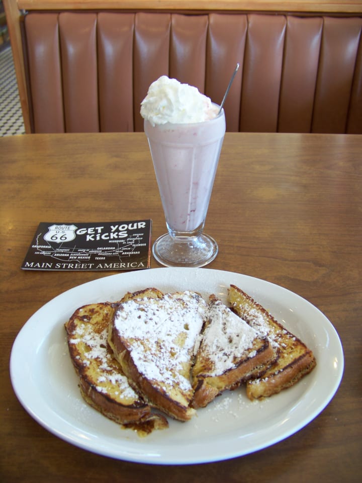 Be sure to stop along the way and enjoy a tasty Strawberry milkshake and a classic meal at places like Goldie's Route 66 Diner along the way.