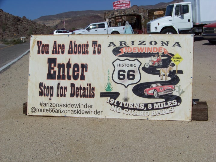 The old path from Kingman to Oatman is exhilarating. Be sure you are ready for 191 curves in one stretch of 8 miles!