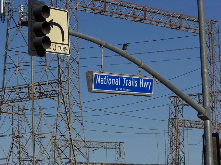The road was also known as National Trials Highway. Here is the sign in Victorville, California.