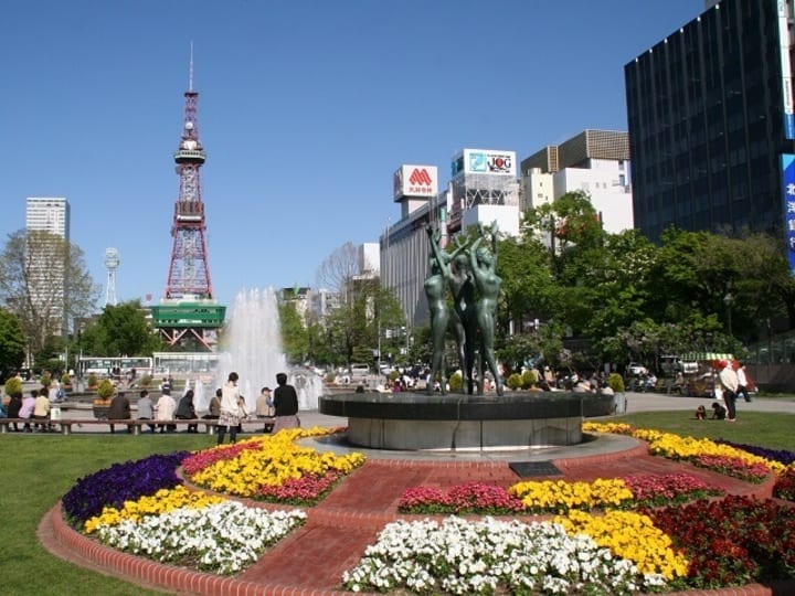 Visitors can get a great view of this site from the Sapporo TV Tower at the eastern end of the park. At the eastern end of the park, you’ll find the Sapporo TV Tower with an observation deck that offers great views of the park and the surrounding city. The tower stands at just under 150 meters tall and the observation deck is at an elevation of 90 meters. At night this landmark is illuminated.