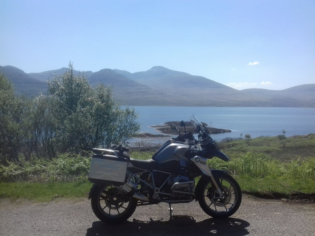 Onward, I rode up the spine of Loch Linneh, a wonderful busy wee Loch with plenty to observe casually from inside the private world of your crash helmet. At The Corran Ferry, you have the choice again to take a short hop across the water. This leads to subsequent single track roads via Strontian and Salen up to Loch Shiel where you rejoin the main A830. Totally worth it if you have the time and the riding constitution to take on the winding roads with passing places. Having cracked that route before and not one to retrace my steps, or tire-tread as it were, I took the route that takes you through Glenfinnan. Beautiful Woodlands of tall pines, great odors, and sudden flashes of purple heather that add to the sense of tranquil freedom. This takes you parallel to Loch Eilt, past The Prince's Cairn and alongside Loch Nan Uamh to Arisaig.