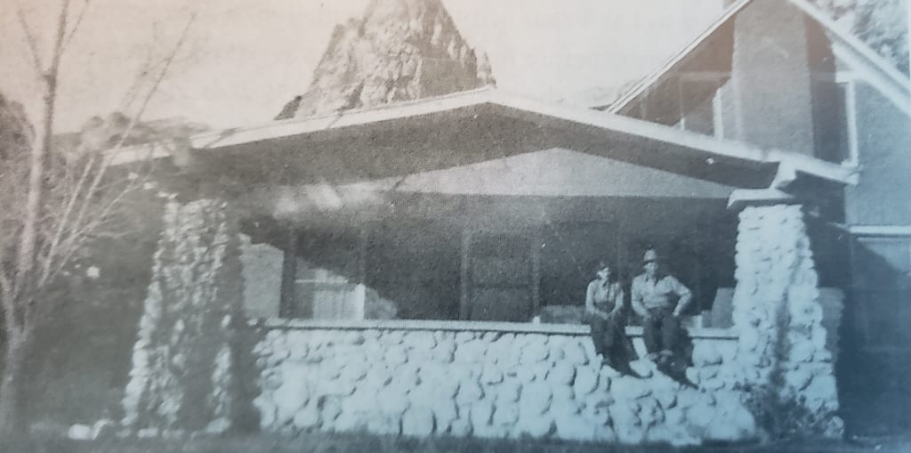 Three quarters of a mile off the Scenic Loop in Red Rock Canyon National Recreation Area, hikers come across the remains of a structure, which today is not on the map. A concrete basement foundation of a home suddenly appears in a clearing, as the trail meets Pine Creek, in the afternoon shadow of the massive cliffs of Mount Wilson and Bridge Mountain.