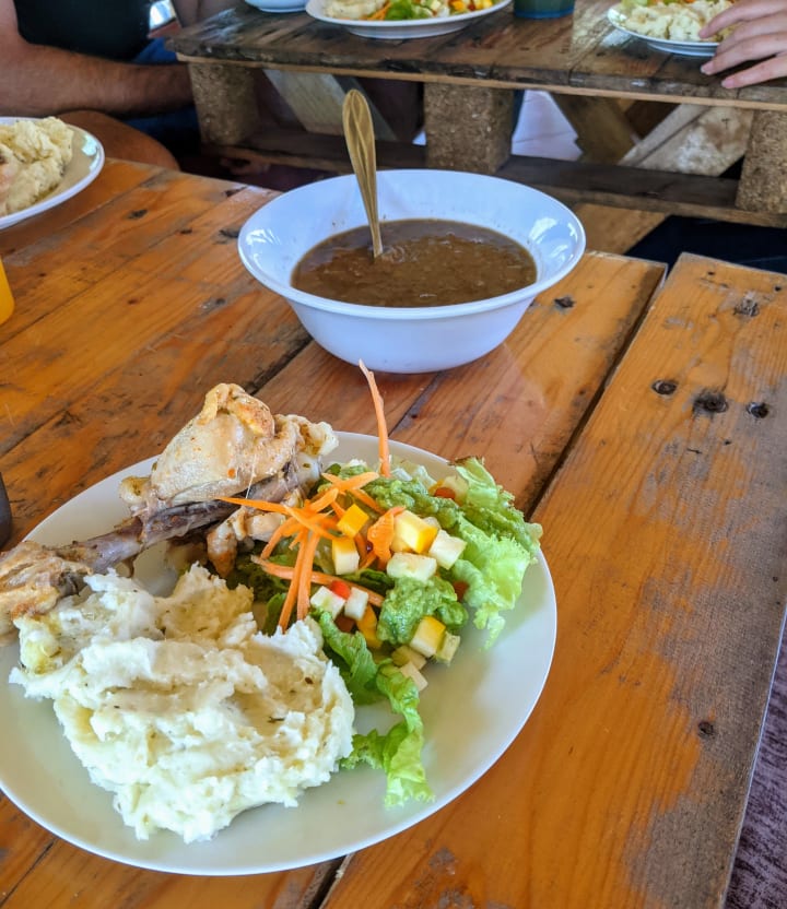 Here in Colombia, lunch is the biggest meal of the day. Typically families eat together. It includes rice, protein, veggies, a salad, soup and a drink.