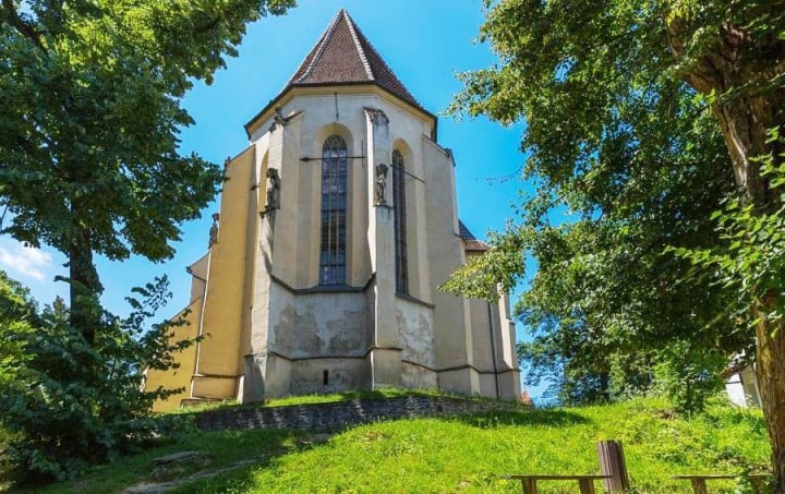 On the north side of the Clock Tower is the Church on the Hill, so called because of its location on School Hill. It was first documented in 1345 and constructed over 200 years. At one time it was a Catholic church, but when the Saxons came it became a Lutheran church. Inside the church, you can see murals dating from 1483 – 1488 and furniture in Renaissance style. The Gothic altarpiece was dedicated to St. Martin and painted by Johann Stoss. In the anterooms of the side naves are three wood-carved coats of arms once belonging to Mathias Corvin and his wife, Beatrix, the Transylvanian Prince Stephen Bathory of Nyir (1479-1493), and the King of Poland and Hungary, Wladislav the 3rd. This lovely church can be reached by a covered wooden staircase known as the Scholars’ Stairs. A Saxon cemetery can be found opposite the church.
