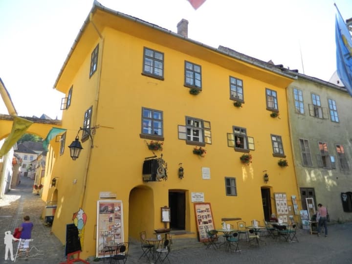 In Citadel Square, not far from the Clock Tower, is the Vlad Dracul House. This ocher-colored house is the birthplace of Vlad Tepes, the inspiration for Dracula. He was born in 1431 and lived here with his father Vlad Dracul until 1435, at which time they moved to Targoviste. Above the entrance, you can see a wrought-iron dragon. In English, the Romanian word dracul stands for both dragon and devil. On the ground floor is a restaurant, and on the first floor, you’ll find the Museum of Weapons. In the museum, you can see medieval weapons. On display is also an oil portrait of Michael Freiherr von Melas who was born in Sighisoara. He became a general of the Austrian mounted troops and, at Marenga in 1880, fought against Napoleon Bonaparte’s army.