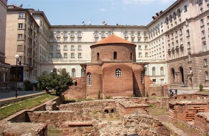 St. George Rotunda is the oldest building in modern Sofia. The red brick church dates back to the 300s. Inside you can see detailed medieval frescoes that were painted over by the Ottomans, at the time the church was converted to a mosque in the 1600s. Outside of the building, you can see the flagstones of a Roman street and other remnants of Ancient Serdica.