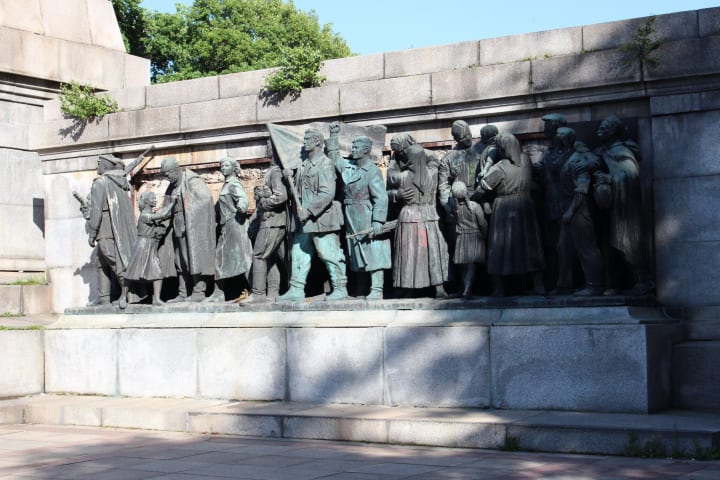 At the east end of the park is the Mound of Brotherhood the Communist monument built in 1956. It features a 42m-high obelisk and socialist-realist icons.