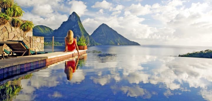 This resorts rises above a 600 acre beach front. It has massive room spaces with a private infinity pool glide. Its bold architectural design makes it one of the most mesmerizing resorts ever. The view of the beautiful greenish mountains is so relaxing. You can visit the diamond falls Botanical Gardens and Mineral Baths which are not too far from the resort or go to the Emerald Farms which is the town's organic farm which provides food for restaurants at the resort. There is so much to do from kayaking to relaxing in the beautiful pools. It is the most luxurious and romantic resort of St. Lucia. It is the only resort property in St. Lucia with the iconic view of both Piti and Gros Piton mountains.