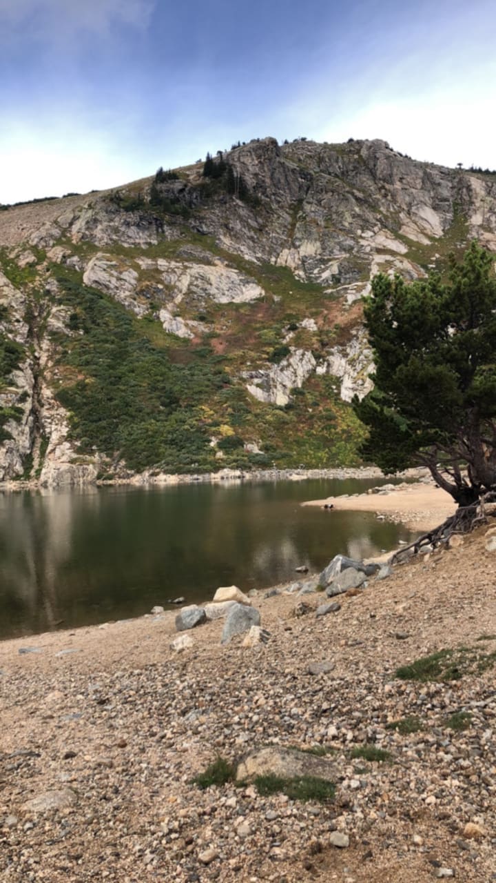 After spending a few hours hiking up and riding down, we decided to make the descent back to the trailhead. We stopped at the lake to take some pictures, stretch our legs, and eat some snacks!
