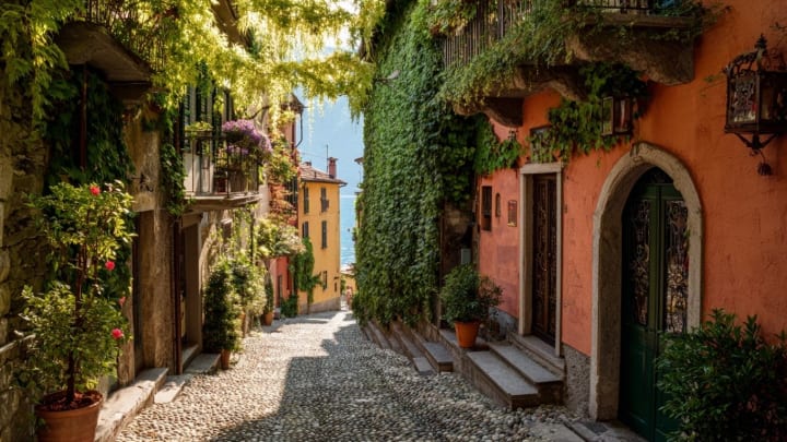 If the lake has a heart, Varenna might be the beat. It’s a small village on the eastern side — part fishing port, part dream. The first thing you notice is the color of the houses: red, yellow, faded peach. Ivy climbs the walls. The second thing is silence. No traffic, no rush.