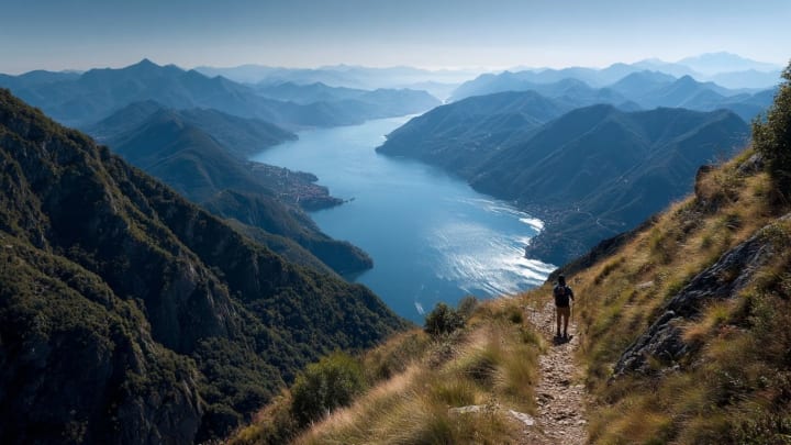 Start early, before the heat arrives. La Via dei Monti Lariani climbs from the villages into the hills. The path moves through chestnut forests, over stone bridges, and across small meadows where cows graze slowly. Sometimes the lake appears below, shining like a sheet of glass.