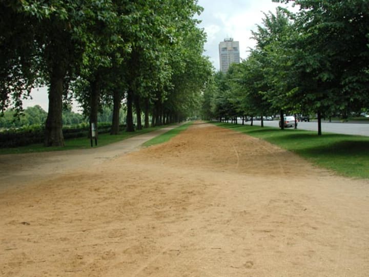 Without having to do with anything rotten there is Rotten Row at the south end of Hyde Park which is a well-known bridle path. The path is also used for jogging. The name of the path was derived from the French "route du roi" or King's Road.