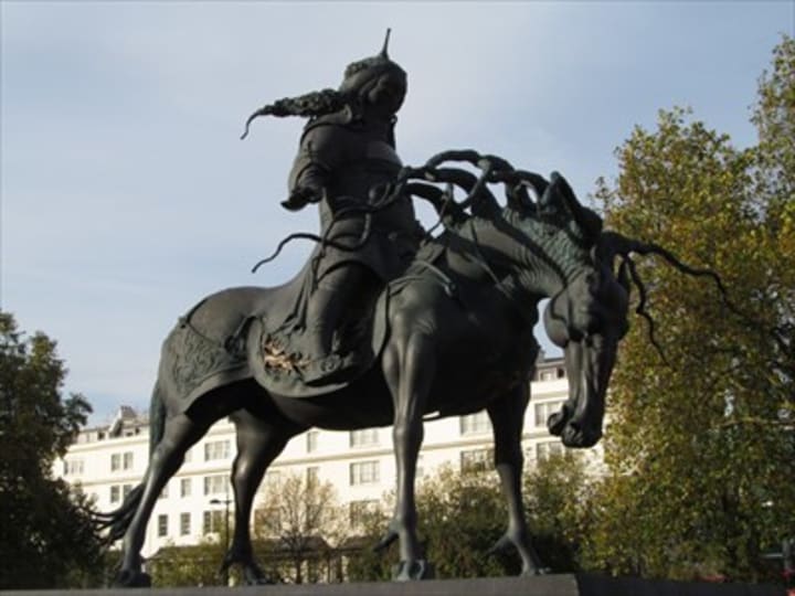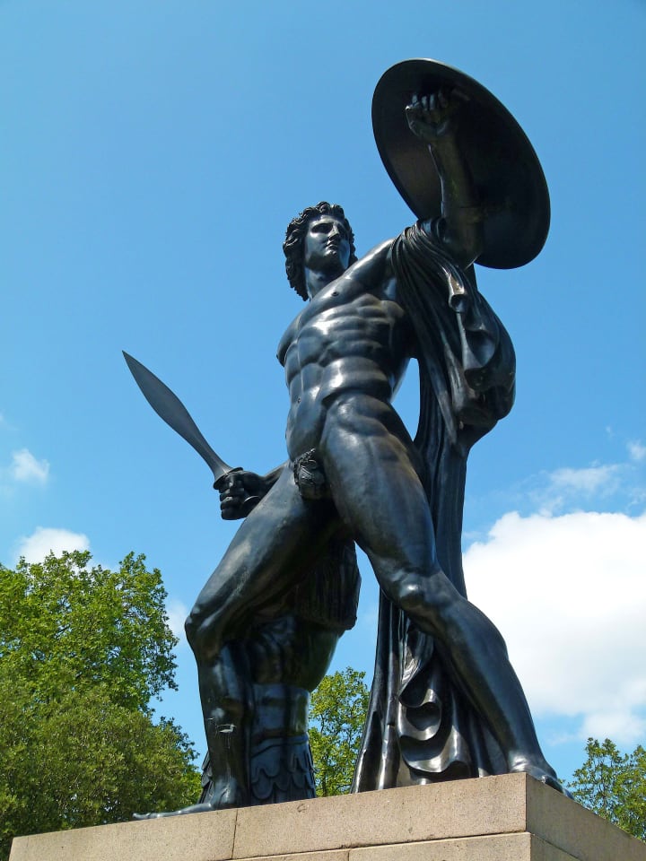 Achilles Statue is the largest statue in Hyde Park and was created to honor the Duke of Wellington in 1822. The Duke scored a victory over Napoleon's army at Waterloo. It is made of bronze from the cannons captured from the French. The statue was created by British sculptor Sir Richard Westmacott.