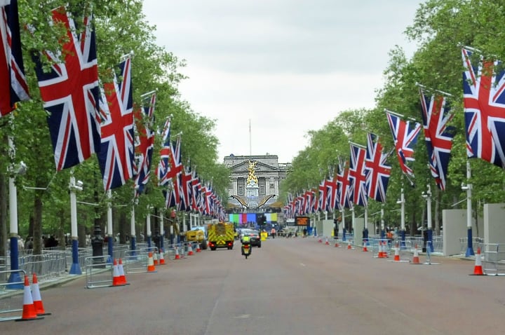 The Mall is a red-brick road that goes to Buckingham Palace. It is the grand processional route from the palace to the Admiralty Arch. Along this road, the Queen rides in her golden carriage waving to crowds during State occasions.