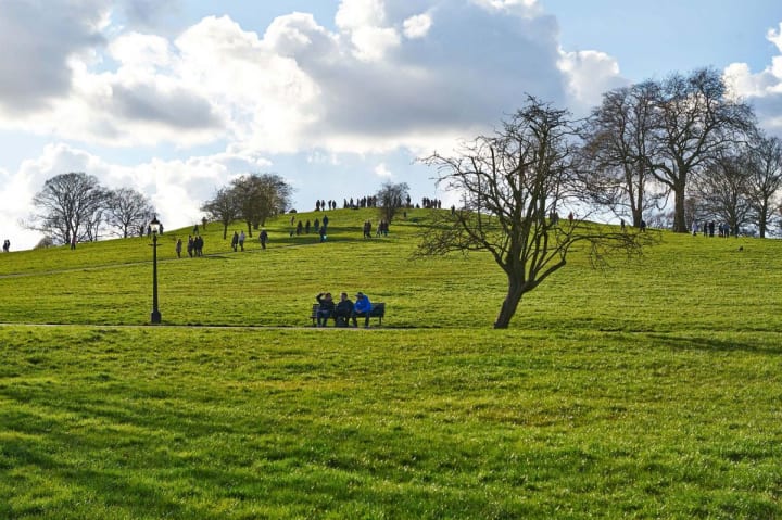 Primrose Hill is a Grade II listed public park that is located north of Regent's Park and opened to the public in 1842. It is named after the natural hill located in the center of the park which is the second-highest natural point in the Borough of Camden.