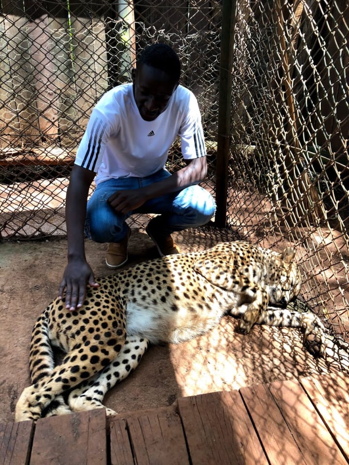 In the photo below was my in-law, I too went into the cage to pet this cheetah, no this is not part of the normal tour. The guy could have been fired for allowing us in this cage with a new animal.