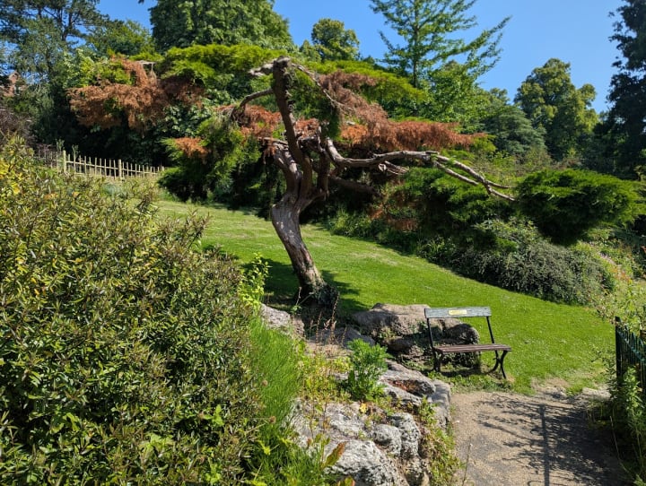 This area of the park was originally a duck pond before being remodelled. The garden was redesigned incorporating 400 tons of rock costing 19s 6d per ton and supplied by Wardley Bros of Milnthorpe, water pumping equipment supplied by Blackstone and Go at a cost of £92 10s. The iron railings cost £76 and were completed by Walmsley and Son. This area remains one of the most popular areas of the park and includes some specimen trees such as Acers and Magnolia trees.