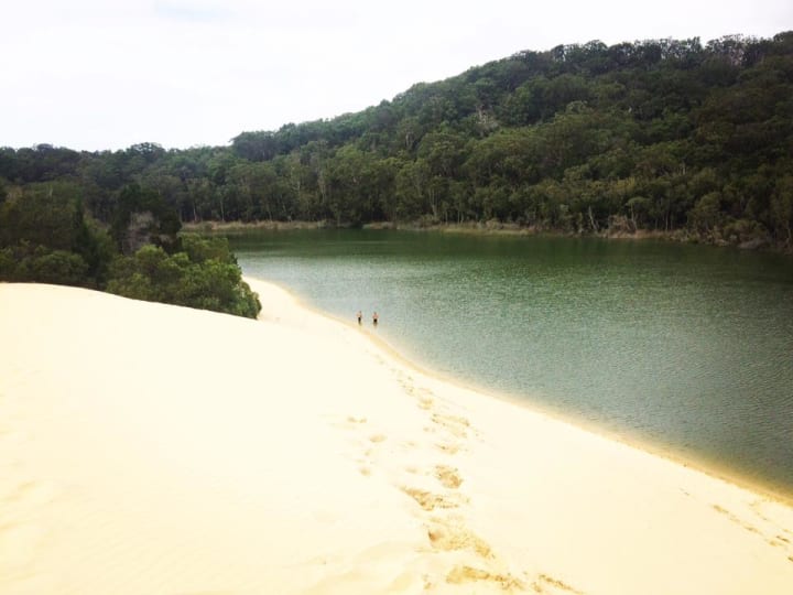 Another incredible lake is Lake Wabby this place is where the desert meets tropical rain forest with a lake in the middle.